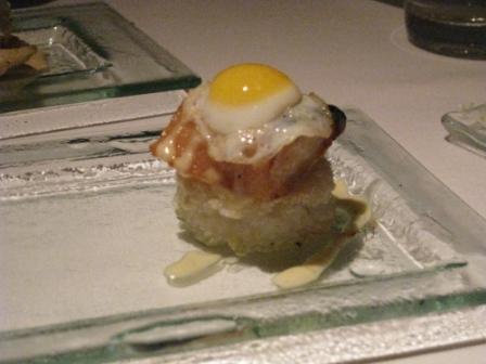 Appetizers included the maryland crabcake, crusted (fried) oysters with a thai peanut sauce, peekytoe crab on tempura potato, blackcod in a miso sauce with a fried quail egg (pictured), and a carpaccio of bigeye tuna with macadamia nuts and coconut milk. The portions on all were microscopic despite prices into the teens on each. The miso cod was the best of the group; very flavorful sauce without it being too sweet as often occurs with miso sauces.