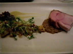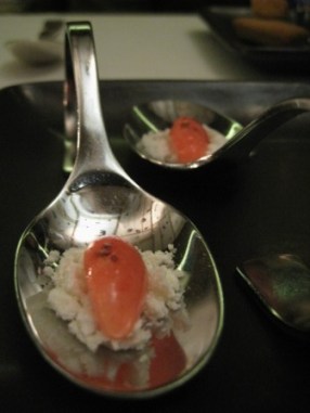 One of the most intriguing dishes was the first one, which is standard every night. For the “pink grapefruit” course you had to first apply some grapefruit oil to your wrists like perfume and the instructions were to smell your wrist while consuming the course. This was very cool and similar to the kind of thing at Alinea.