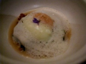 The rest of the courses were most impressive in the strategic yet subtle use of contrasting flavors and textures to create unique experiences in your mouth. (Ok, it was not nearly as sexual as this sounds, but it was REALLY good) I go to fusion this and eclectic that all the time and in my experience they typically don’t work more than they do. Coi not only made it work, but did it without the effusive use of butter, cream, animal fat, and all the wonderful goodies that always make chefs seem better than they really are. Most of the dishes were light and possessed delicate flavor, but were highly complex. Kinda like the way you might describe a great older burgundy or bordeaux…which probably would have paired better than what we brought…oh well, maybe next time.