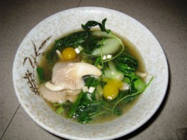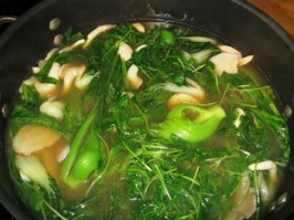 Added some greens, mushrooms, sliced ginger, and gingko to the dashi, sake, and fish broth for a nice soup to accompany the spot prawns. Quail eggs added to bowl for extra creamy flavor.