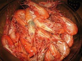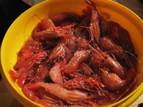 Before and After…”Marinating” Spot Prawns on the Left, Ready to Eat on the Right
