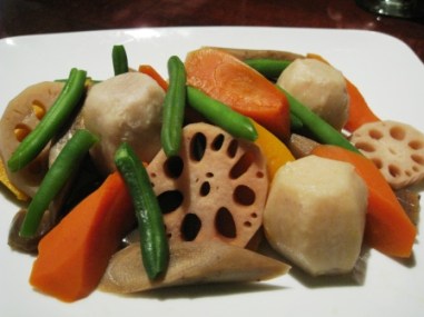 Nimono, Assorted boiled or stewed vegetables that reminded me of Oden.  I think they were cooked in dashi.  The yam paste and the lotus were my favorites.