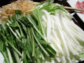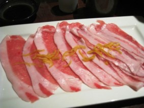 Not pictured above are both the noodles (chukasoba – symbolizes long life)  and the broth that went with this Shabu-Shabu dish.  Again, the portion above was per person.  Veggies and tofu skin was on the side.