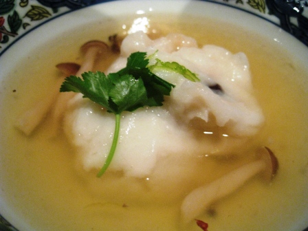 Yurine Manju: Steamed lilly root cake in shrimp, fish cake, and shitake mushrooms and gingko nut with fish broth, kudzu, arrowroot.