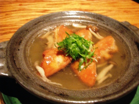 Ankimo Toban Yaki – Monkfish liver with that same arrowroot sauce. THe sauce is seasoned a bit differently for each dish so we were fine with the repetition. On this dish, Scot went nuts. For me, it was a texture issue; I prefer it just steamed like they do in sushi bars. This preparation made it softer. $12.95
