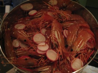 The chef brought out the alive and kicking spot prawns for