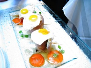 The waiter really had to talk us into this one by promising it would not be too fishy. It was too fishy. And too smoky. And the quail eggs were a bit overcooked.
