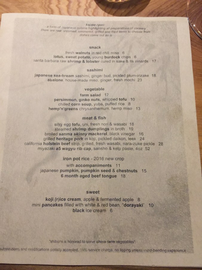 And Shibumi self-identified as a Kappo Ryori.Not an izakaya, not a gastropub, not a sushi bar. Who does that, except someone who truly understands what that means? Could this place be legit?